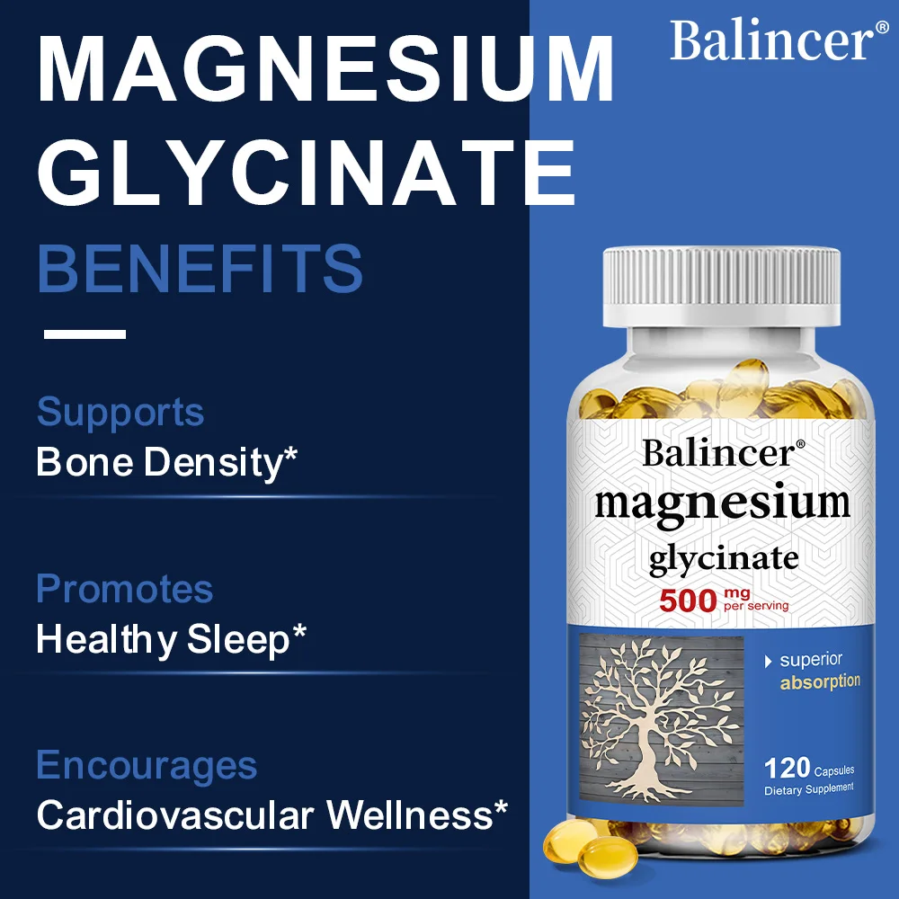 Magnesium Glycinate Capsules 500mg - Supports Muscle, Joint and Heart Health, Promotes Deep Sleep